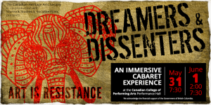 A few years ago, CCPA hosted a show called Dreamers and Dissenters, which was part immersive performance and part jukebox musical. I loved this show – the first half was a journey into the world which the play was set. Audience members got to make music and make up games together, we were all there together in the weirdness and it got us all ready to be part of this world they had created for the performance. Or take Ghost Theatre’s Tomorrow’s Child that we saw at Spark a few years back. This performance had the audience blindfolded, which immediately put us in a position of discomfort. But the performers took care of us, and that final reveal was (in my opinion) so worth it.